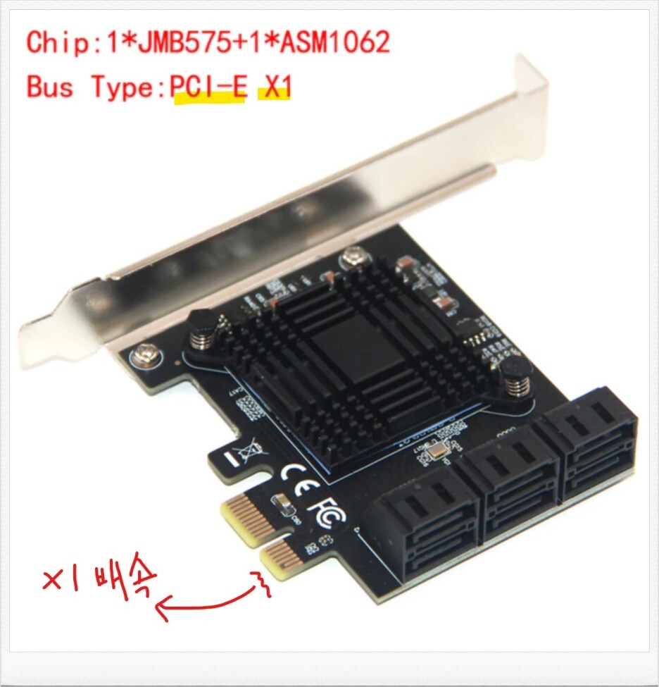 우선 필자의 헤놀로지 메인보드의 SATA3 포트는 총 4개이며, 그 중 1개(1번포트)가 부러져서 2,3,4번만 쓸 수 있습니다. 제품은 타오나스 8베이 제품이니 당연히 ATX 메인보드의 SATA포트가 부족해서 알리표 SATA 확장 카드를 구매 하게 되었습니다.