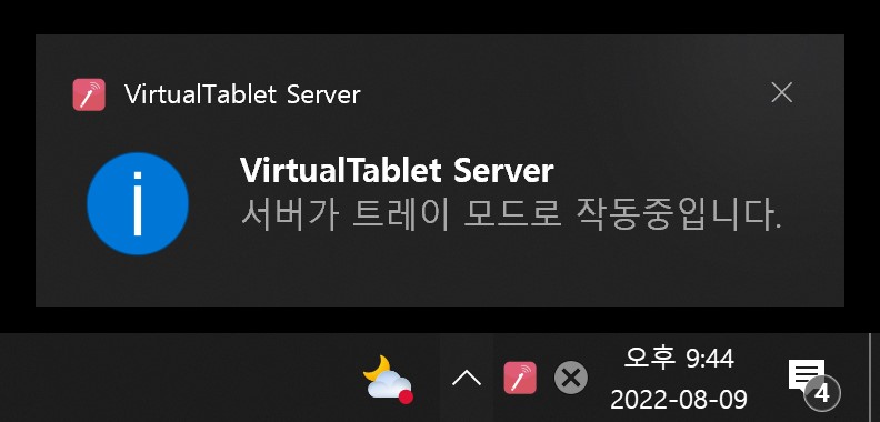 버추얼태블릿 서버 3.0 인스톨 파일을 다운로드 후 설치