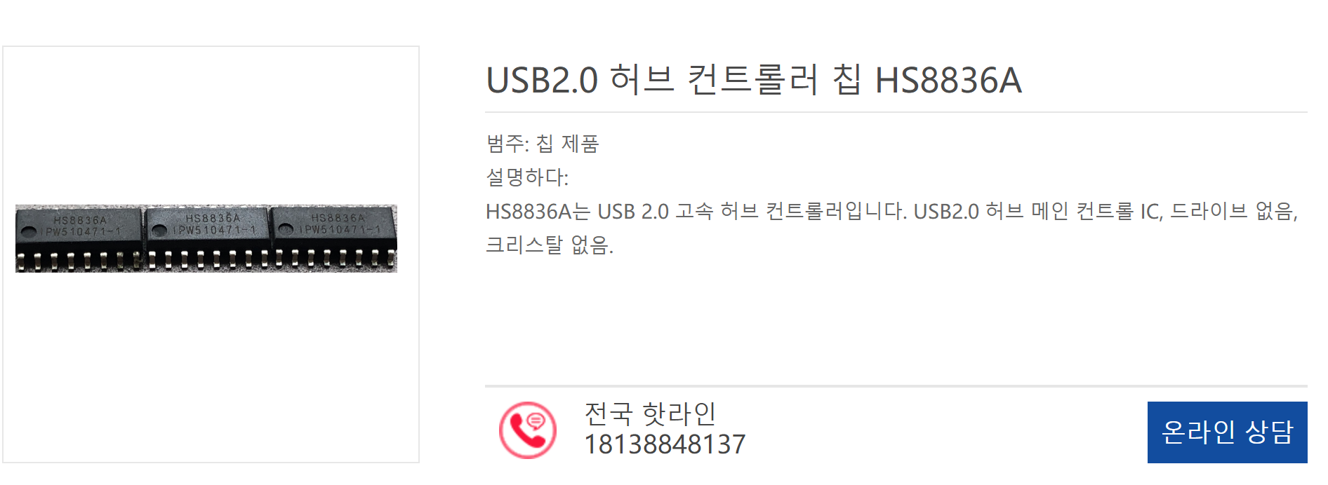 정확히.. USB 2.0 허브 커트 롤러 칩이라고 하는 걸 알 수 있습니다