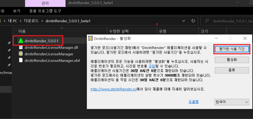 해당 드미트리 사이트는 러시아 회사에서 제작한 프로그램으로 30일 평가판으로 사용하시고 괜찮으시면 유료 결제를 통해 라이센스를 구입하실 수 있습니다.