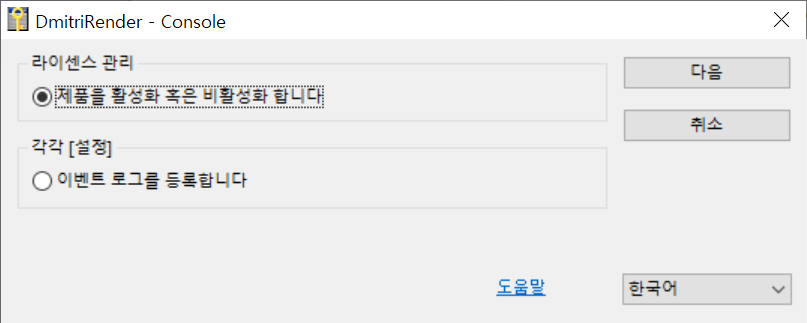 마지막으로 불러들인 드미트리 렌더를 한번 클릭 후 하단에 우선순위 설정을 최우선 순위로 체크를 한 다음 확인을 눌러 환경설정을 완료하면 설정이 완료된다.