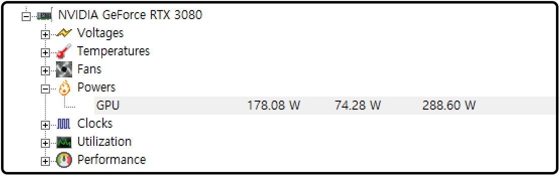이와 같이 설정 시 GPU의 전력이 조금씩 차이가 난다.